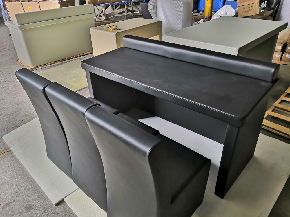 5、審訊桌采用長方形桌體,桌內(nèi)預(yù)留筆記本電腦及打印機(jī)電源及報警系統(tǒng),并采用隱蔽式安裝方式。