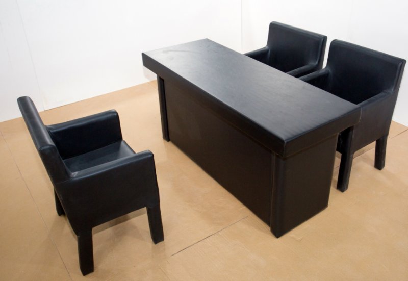 為防止因被審訊(訊問)人因發(fā)生碰撞而造成意外,留置室里的審訊臺審訊椅以及床都要進行軟包或圓角處理,不能有尖銳突出審訊桌椅還必須具備以下特點: