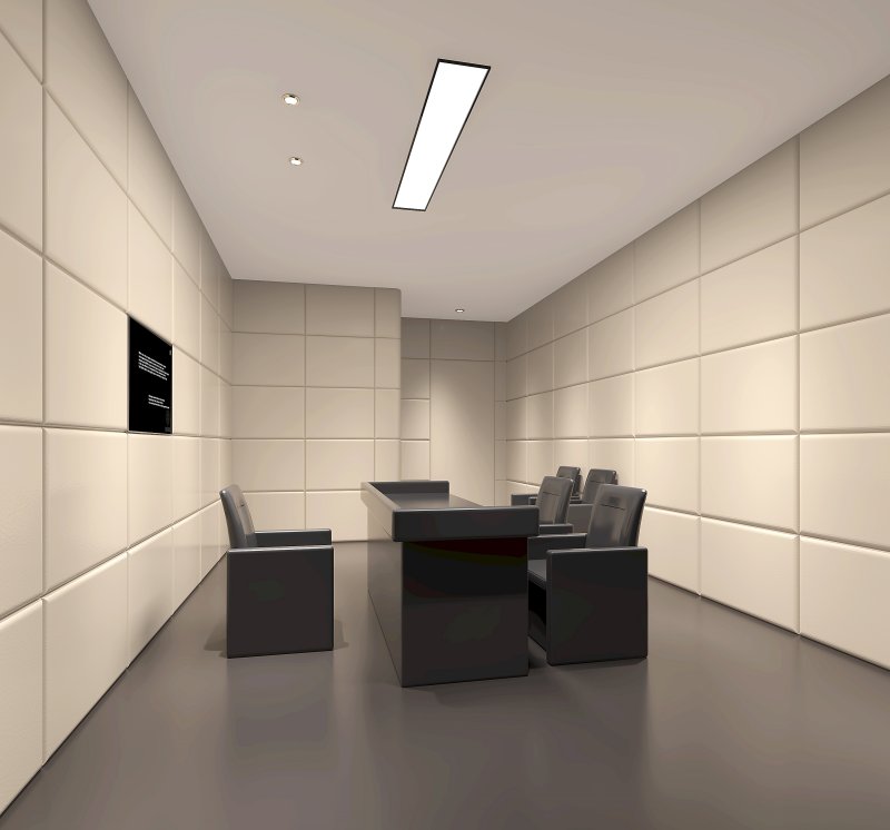 軟包的這種使用性質(zhì)決定了其必須同時(shí)具備很高的防撞性能及阻燃性能,談話室是紀(jì)委監(jiān)委辦案區(qū)辦公的場所,消防和人身安全是設(shè)計(jì)的要點(diǎn)(防撞性能不足會(huì)造成人員受傷影響辦案進(jìn)程,阻燃性能不足會(huì)導(dǎo)致消防安全隱患),所以軟包的材質(zhì)選擇及制造工藝。